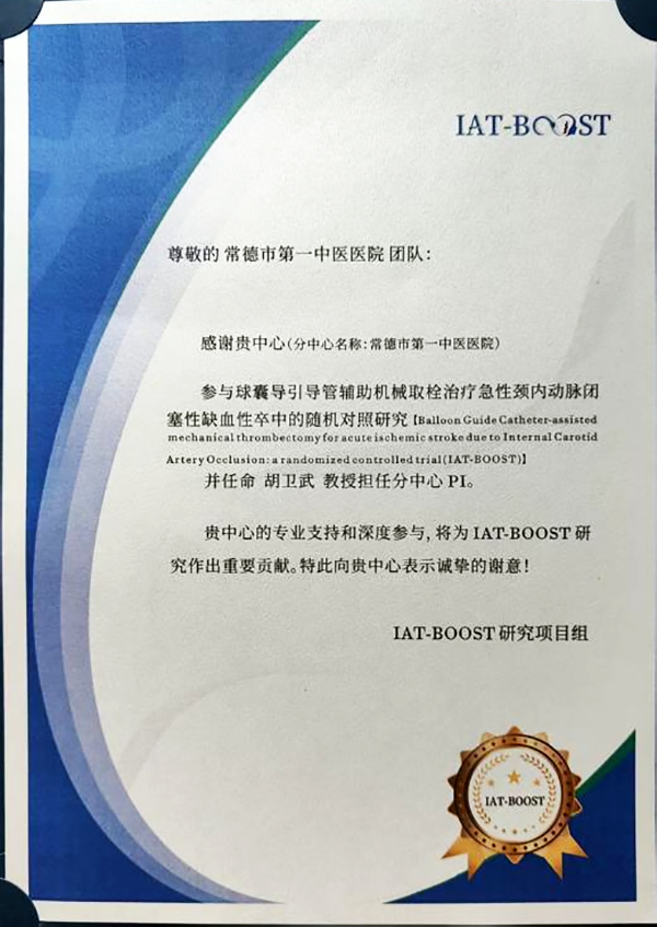 此次参会,胡卫武副主任作为中国医师协会神经介入专业委员会第三届委员,向国内优秀专家团队学习请教,提升了医院在脑血管病复杂病例诊疗及科研创新方面的能力,也展示了常德市第一中医医院脑血管病诊疗领域的专业风采。医院将以此为契机,持续加强学科梯队与人才培养,提升脑血管疾病防治水平,为常德地区百姓提供更优质诊疗服务。