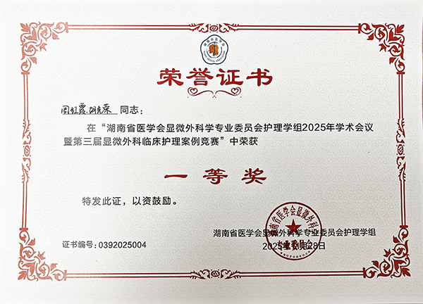 11月28~29日,湖南省医学会显微外科学专业委员会护理学组2025年学术会议暨第三届显微外科临床护理案例竞赛在长沙举办。我院骨伤科手足、小儿病区护理团队凭借优质案例与创新展示,在竞赛中获一等奖。