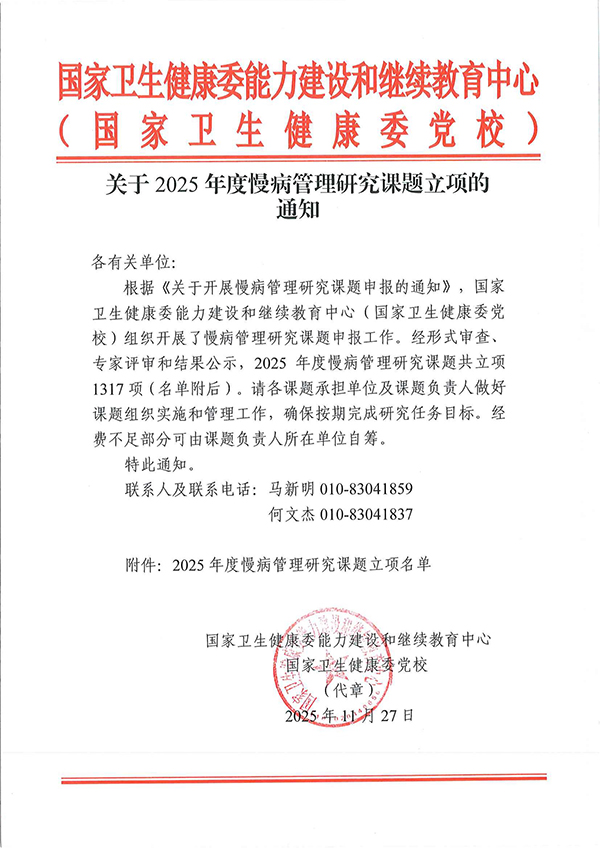 我院运动医学科团队获国家卫健委慢病管理研究课题立项