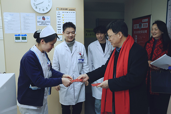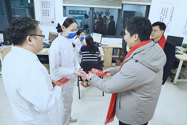 院长李振龙,党委委员、副院长陈伟带领相关职能科室负责人看望并慰问坚守岗位的值班人员