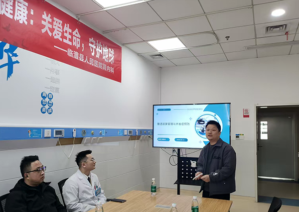 同时,医院肾病科主任杜安民带领专家团队,在门诊大厅开展免费义诊服务。专家们耐心接待每一位前来咨询的市民,细致提供问诊评估、用药指导、健康筛查等服务,针对肾脏疾病预防、透析护理、饮食调理等群众关心的问题,逐一耐心解答,用专业服务筑牢群众健康防线。健康讲座环节,肾病科副主任医师丁文围绕《尿毒症继发性甲状旁腺功能亢进防治》,深入浅出讲解病症防治要点,帮助患者及家属掌握科学管理方法,提升健康防护能力。医院肾病科副主任向家强、主治医师田辉带领专家团队,同步前往临澧县人民医院开展联合义诊,并为9名腹透患者送上现金资助,将健康服务与公益帮扶延伸至基层,切实解决群众就医难题。