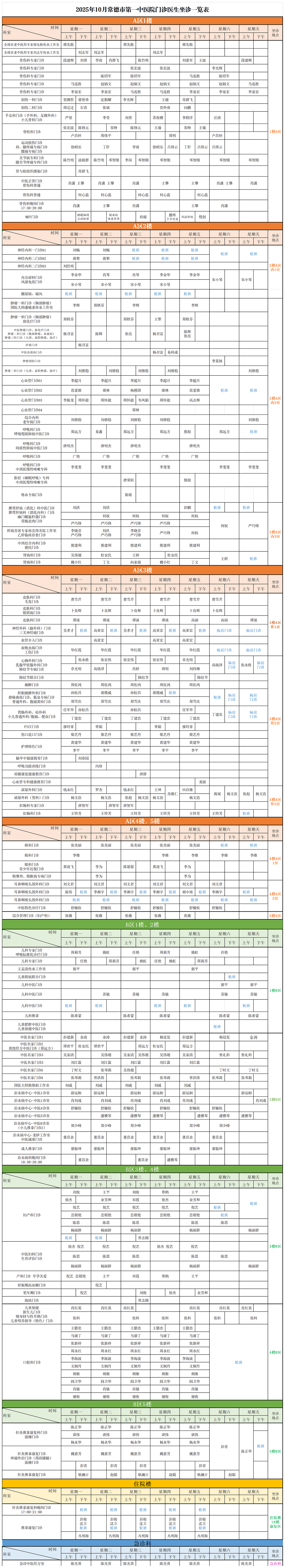 门诊医生坐诊一览表